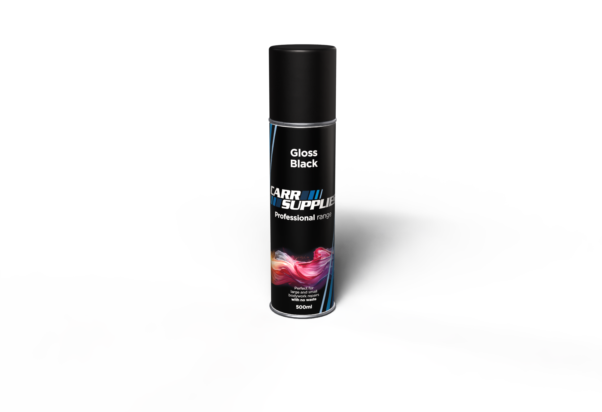 Carr Supplies Gloss Black Aerosol (acrylic) is a fast drying refinishing paint with good protection against weathering and yellowing.