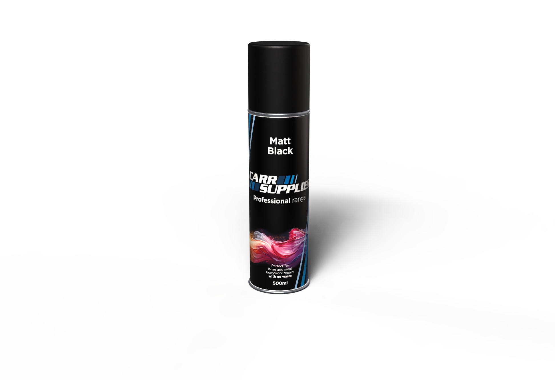 Carr Supplies Matt Black Aerosol (acrylic) is a fast drying refinishing paint with good protection against weathering and yellowing.